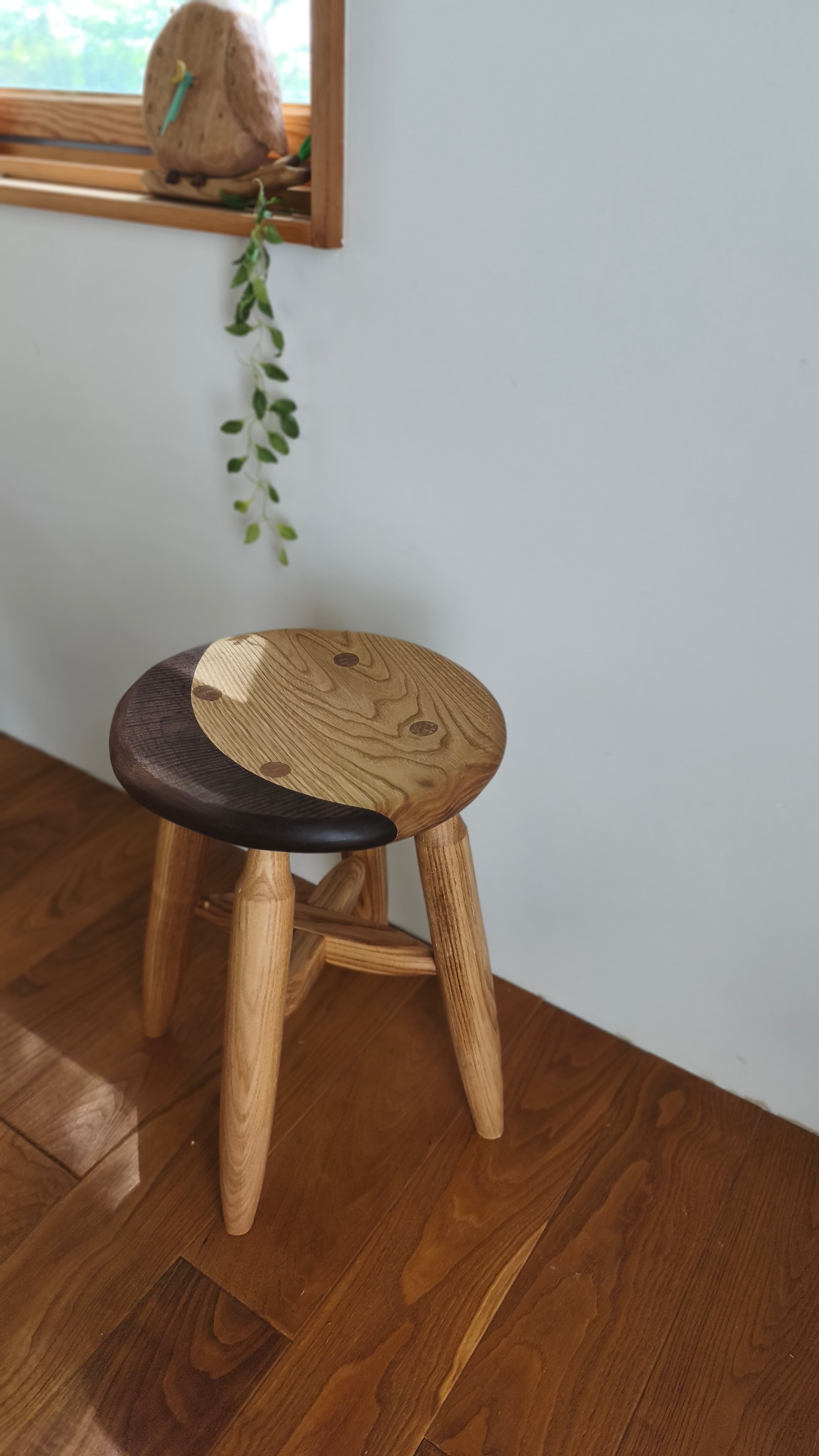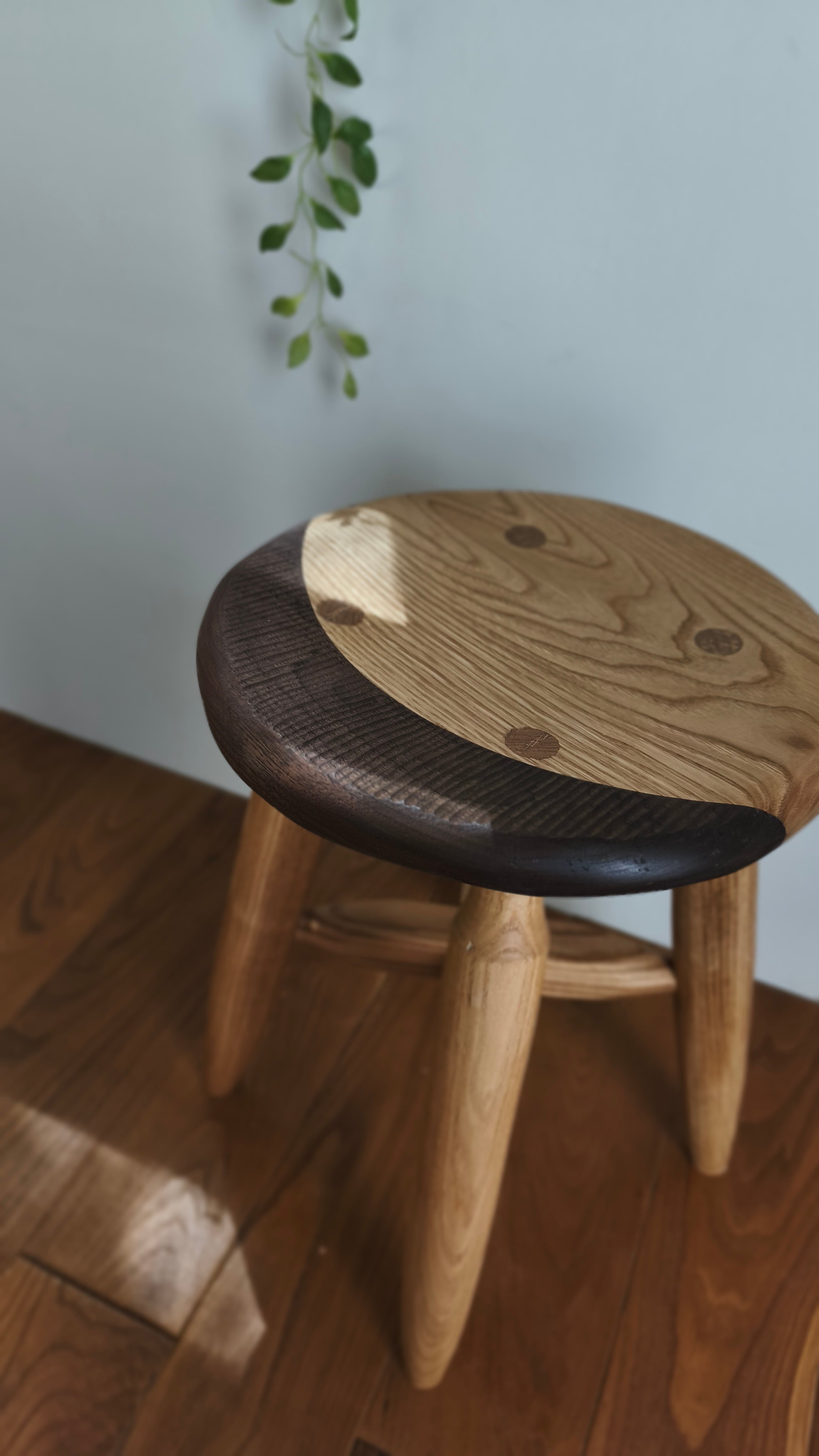 大人気の月の満ち欠けスツールにウォルナットバージョンが出来ました