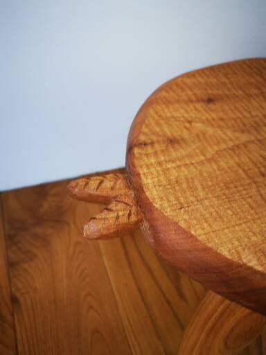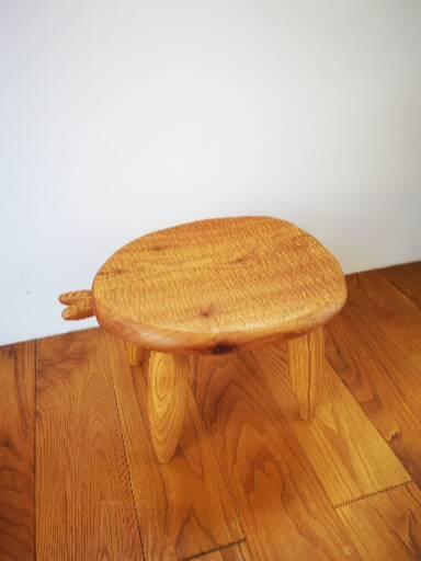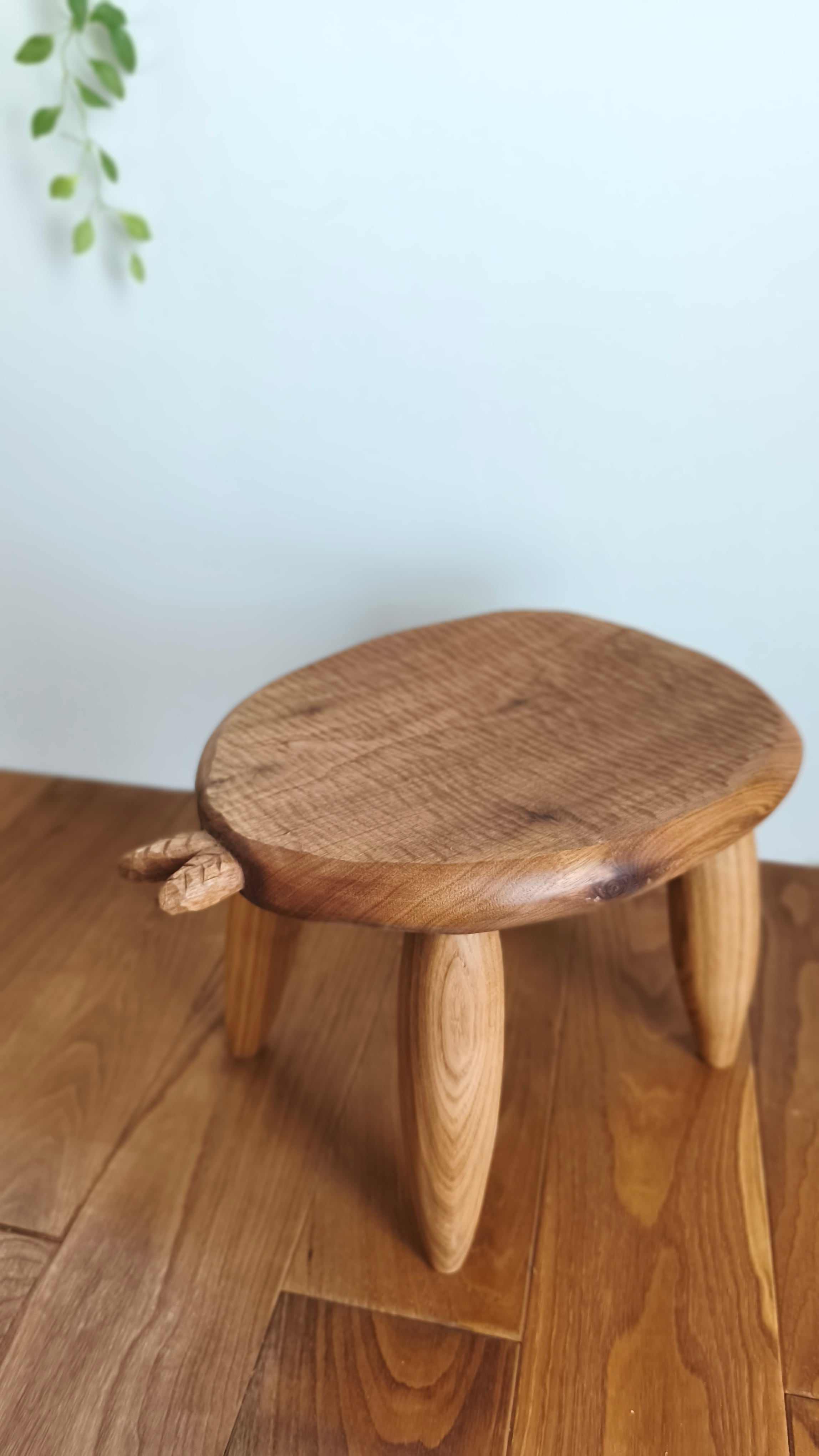 葉っぱが芽を出した手彫りで仕上げたスツールです